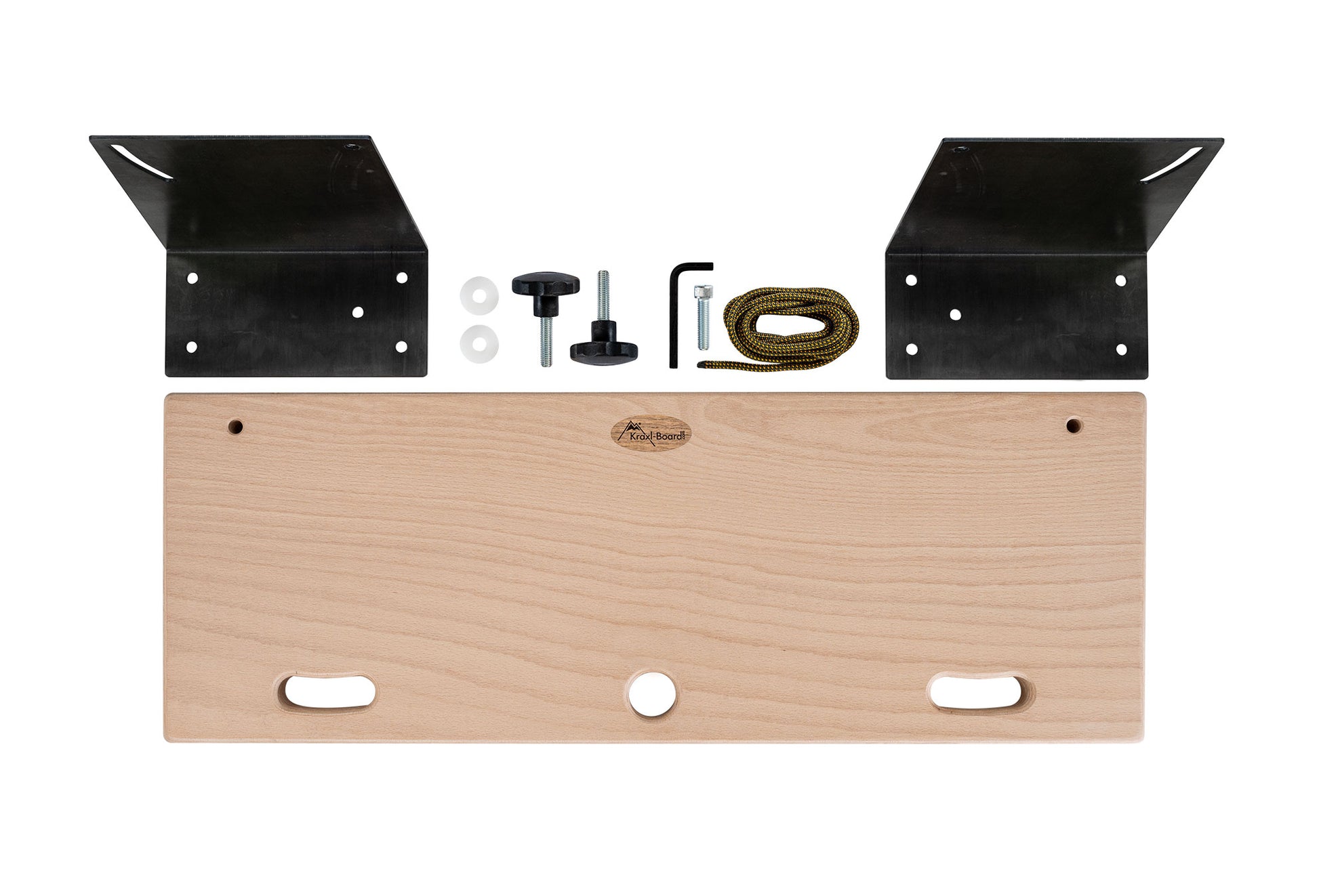 ✅ Volumen de suministro ► Kraxlboard The Wall Base placa base, 2 unidades de suspensiones ajustables en inclinación (soportes de pared) - sin material de fijación, cuerda de seguridad.