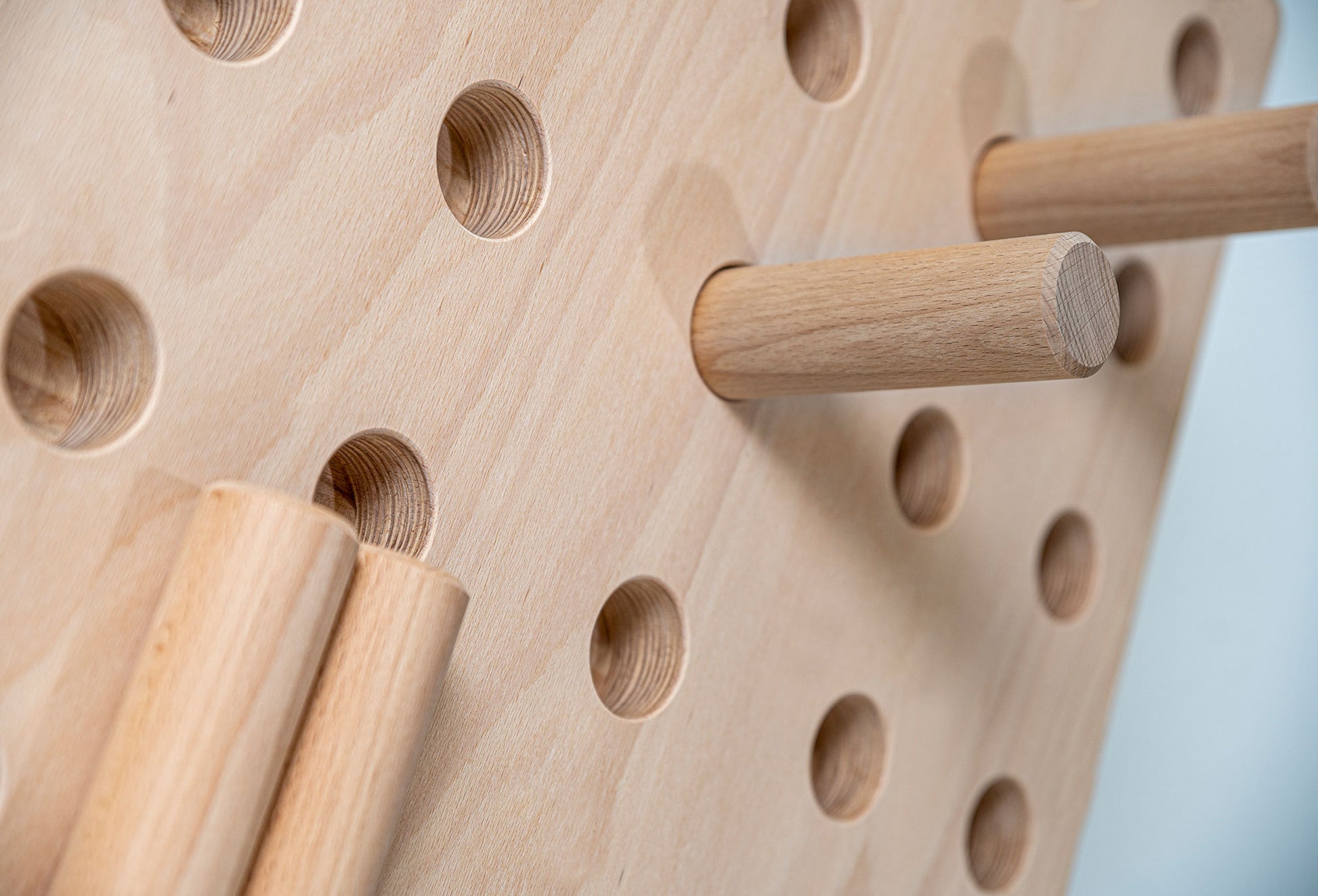 ✅ Materiale ► Il pannello forato è realizzato in compensato multistrato di faggio.